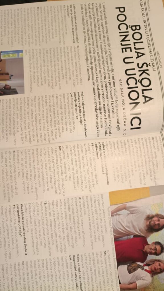 Na županijsku smotru upućena su čak dva novinarska intervjua, koje su kreirale Nola Dečak (6. d) i Melita Anđel (7. b).